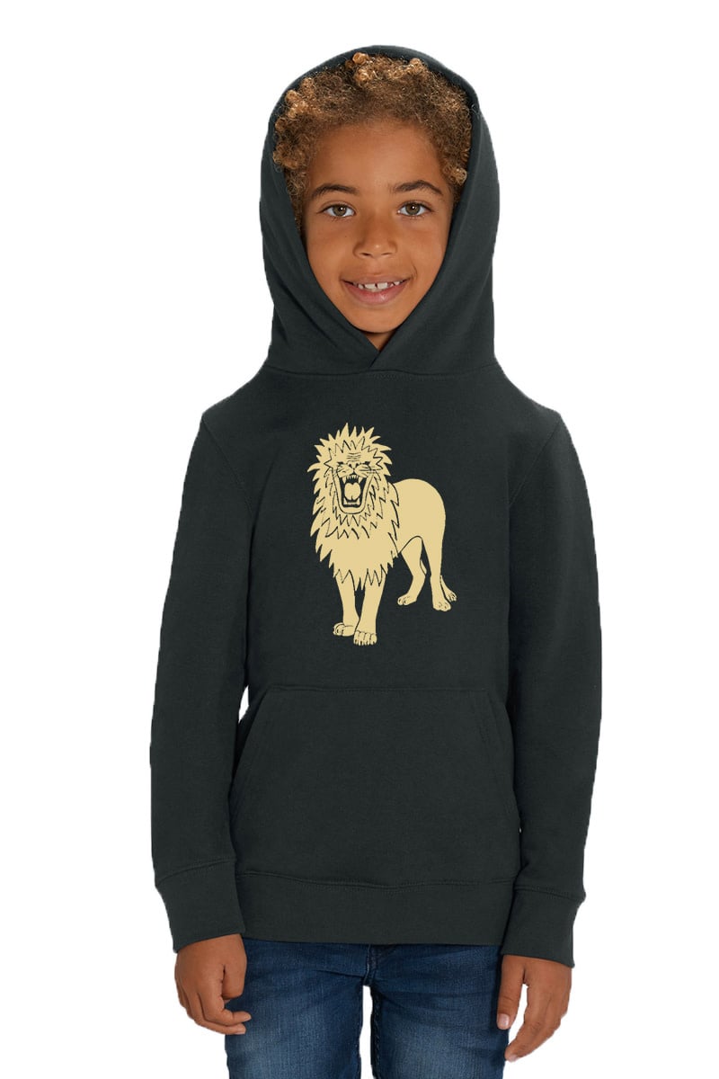 Verbeeld de kracht van de leeuw met onze zwarte kinderhoodie met een gedurfde leeuwenprint! Laat jouw kleintje kracht en zelfvertrouwen uitstralen in deze stoere en stijlvolle hoodie. Gemaakt van zachte, hoogwaardige materialen biedt deze hoodie de hele dag comfort. Perfect voor zowel avontuurlijke activiteiten als lekker ontspannen op de bank. Sta voor de geest van de leeuw en inspireer tot moed met deze opvallende hoodie!