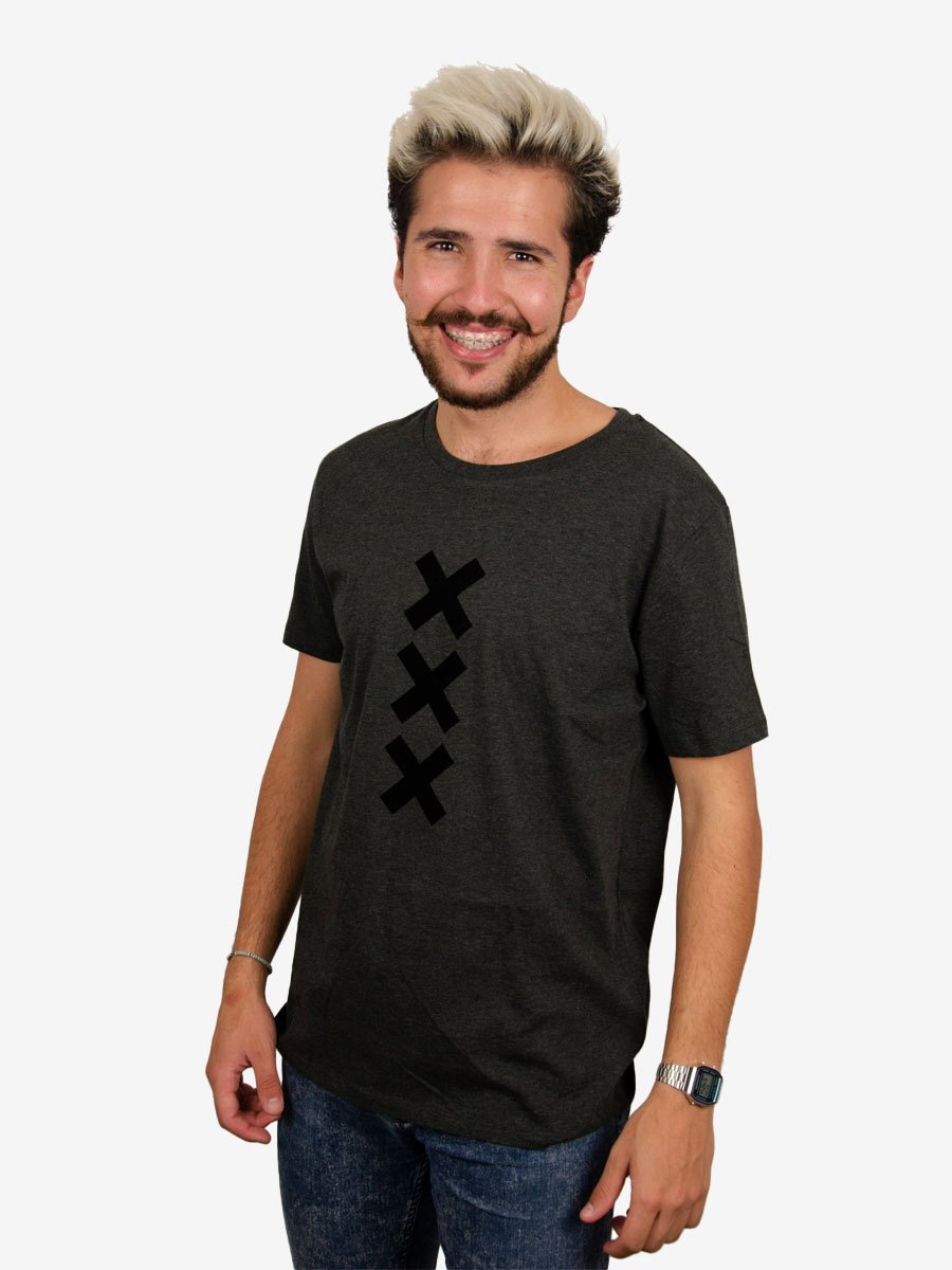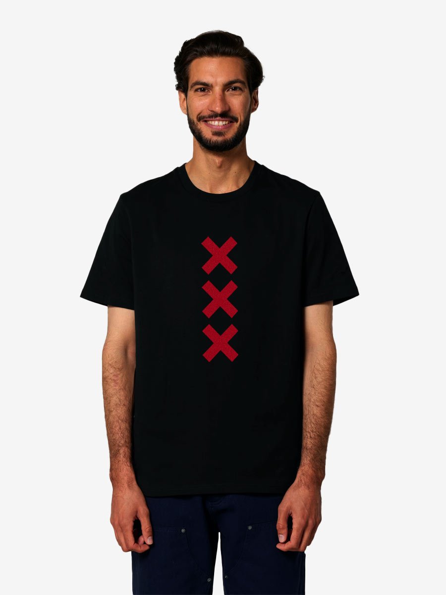 Dit mooie heren XXX Amsterdam T-shirt van het merk Stanley & Stella is gemaakt van biologisch katoen. Het model is een mediumfit T-shirt, 180grs dik en verkrijgbaar in grote maten. Van XS t/m 4XL (XXXXL). De rode Andreas kruizen van Amsterdam (Mokum 020) zijn met suede flockfolie opgedrukt. Een mooi cadeau voor vaderdag, een verjaardag of voor de feestdagen.