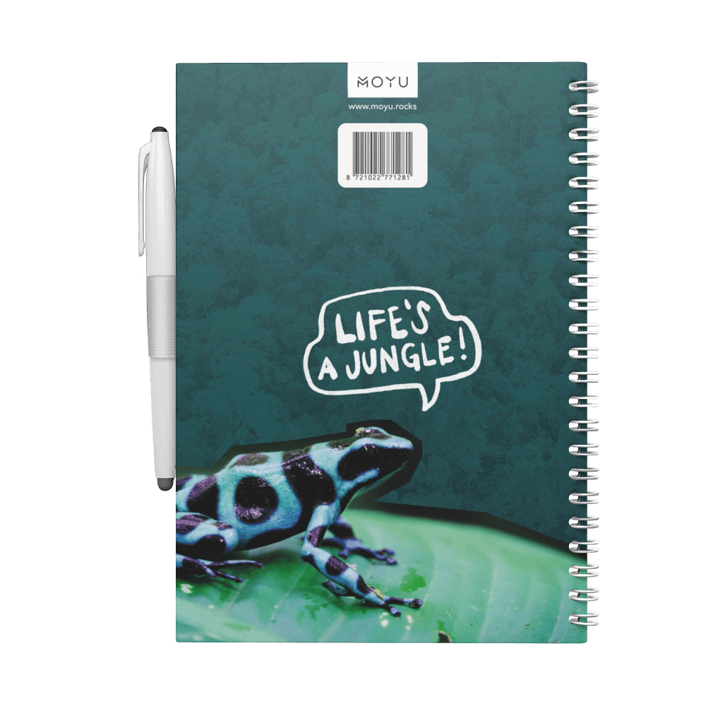 Er zijn géén hout en water nodig voor de productie van ons steenpapier: uiterst duurzaam dus. Door de unieke eigenschappen van steenpapier zijn Moyu boekjes scheurbestendig, waterafstotend en tot wel 500x herschrijfbaar. Eén Moyu notitieboek staat dus gelijk aan zo'n 500 papieren notitieboekjes. Tel uit je winst en de winst voor de natuur!